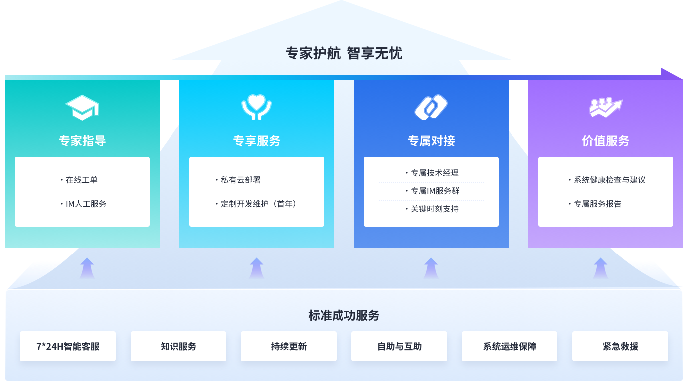 为客户提供专属服务经理、关键时刻支持和专属IM群等贴心服务,保障系统高效运行